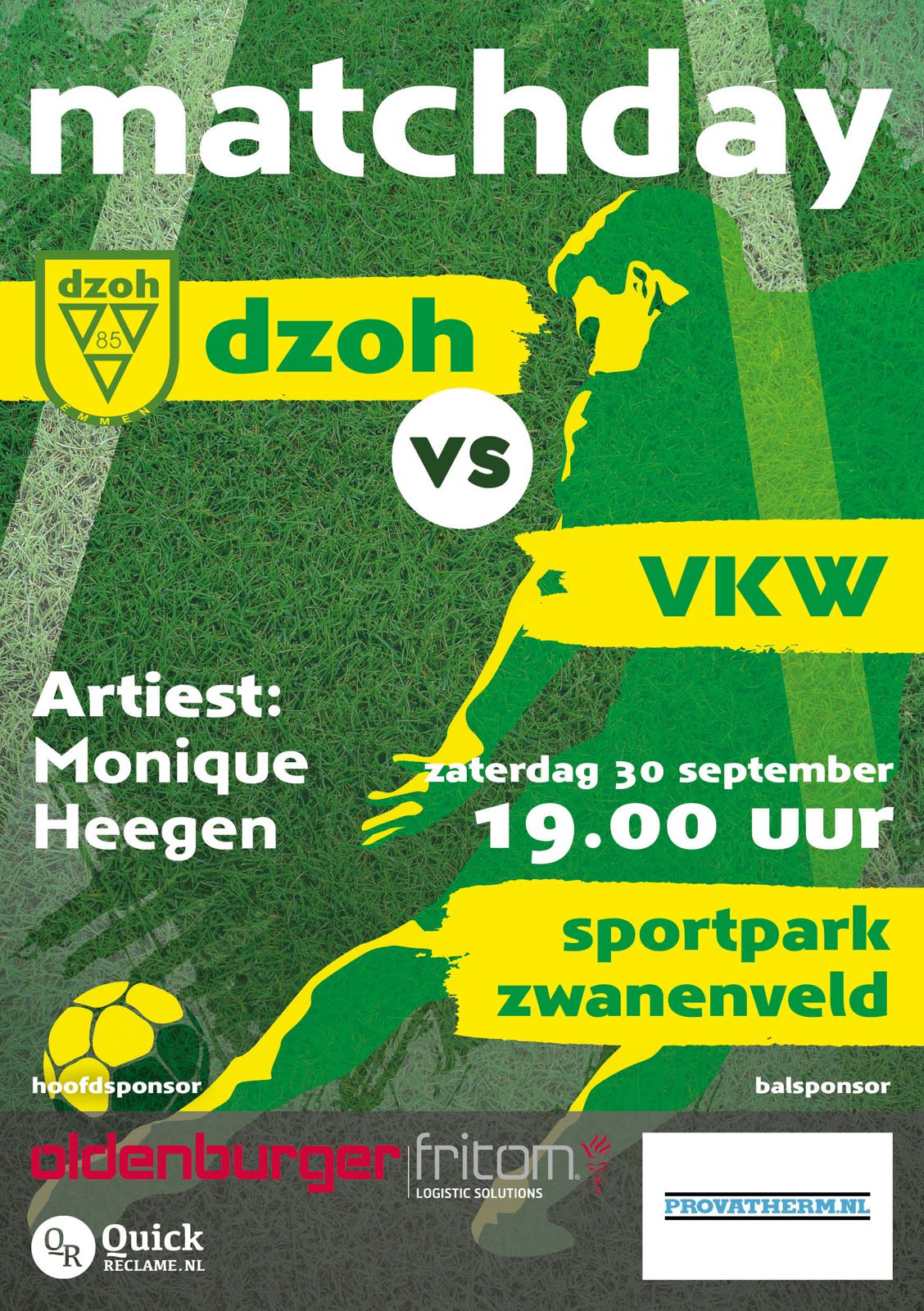 Zaterdag 19.00. DZOH - VKW. (Artiest: Monique Heegen)