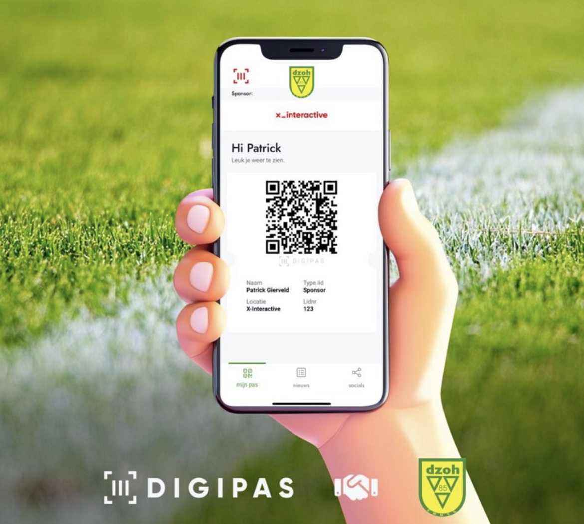 Vanaf het aankomende seizoen gaan wij als DZOH van start met het gebruik van de Digipas.app. Met deze app die onze sponsor X-Interactive heeft ontwikkeld krijgt ieder lid van de vereniging (ook business club en sponsoren) een eigen persoonsgebonden digitale ledenpas.