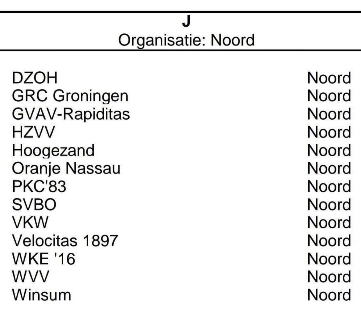 DZOH is komend seizoen ingedeeld in de 1e klasse J van district Noord. Een competitie met teams uit de provincie Groningen en Drenthe. Een mooie indeling met o.a. de Emmense derby’s tegen WKE’16 en SVBO!