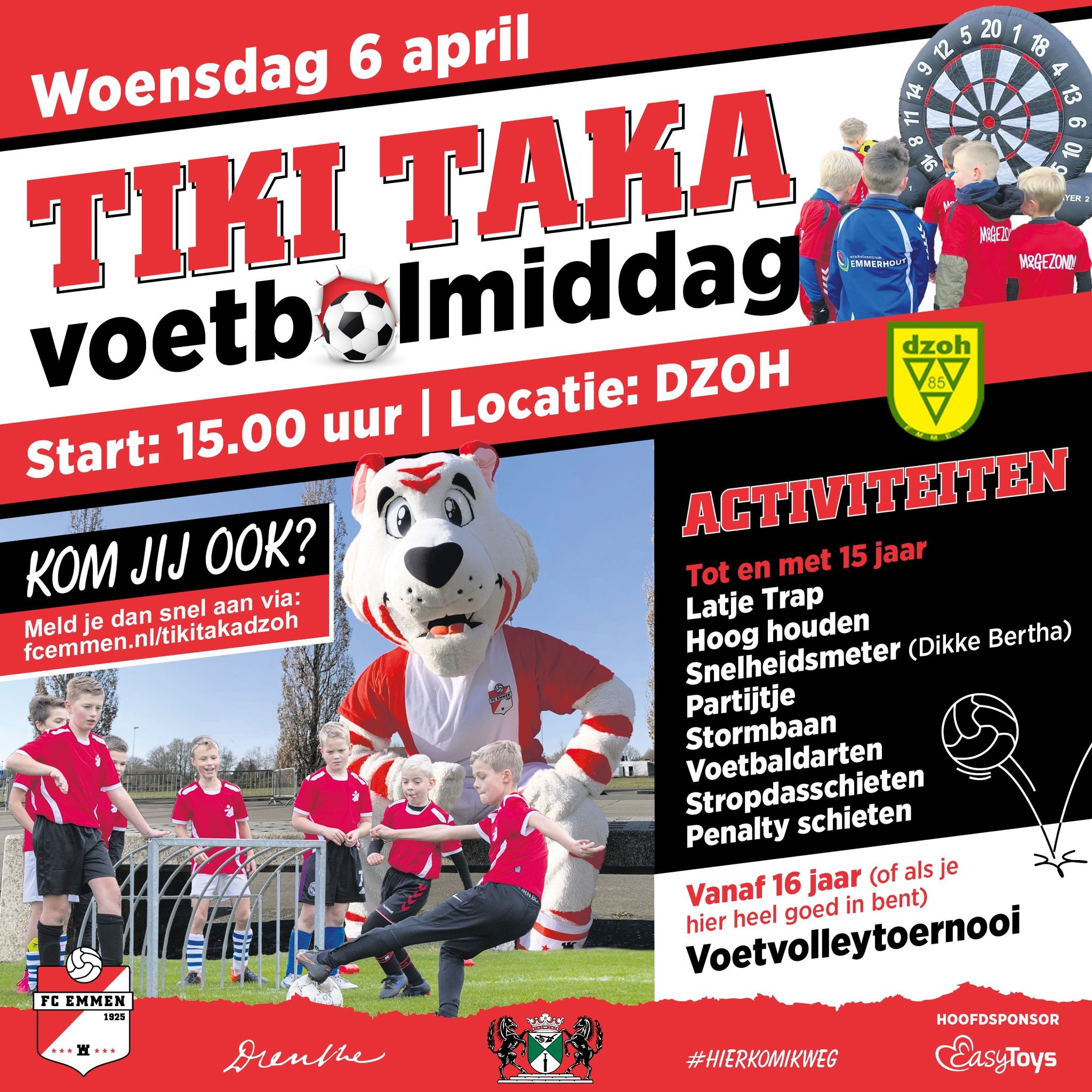 Kom jij ook? Meld je dan nu aan via: https://fcemmen.nl/tikitakadzoh/ Er geldt een maximum aantal deelnemers van 240 kinderen.