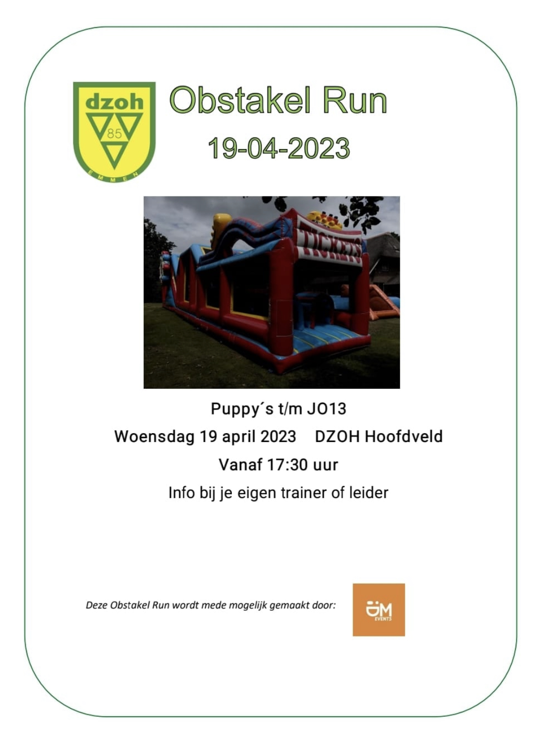 Obstacle run woensdag 19 april. Puppy’s tm JO13. info bij je leider of trainer.