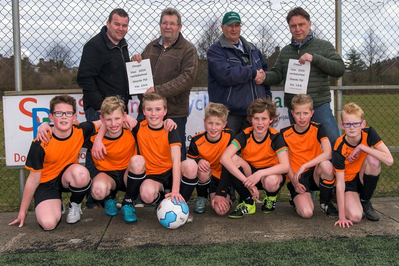 Woensdag 11 maart jl. is de Voetbalschool van DZOH van start gegaan. De ruim 50 deelnemers waren razend enthousiast om weer te beginnen. Alle deelnemers kregen een nieuw voetbalschooltenue en een eigen nieuwe bal om daarna de verschillende oefenvormen fanatiek uit te voeren. De komende 10 woensdagen mogen zij zich uitleven in het verder onder de knie krijgen van hun voetbalvaardigheden. De voetbalschool wordt financieel ondersteund door OldenburgerІFritom, G&W Brink Metaal BV, McDonalds Emmen en Stichting Recycling Rietlanden. Zij maken het mede mogelijk dat de jongens en meisjess tegen een relatief laag bedrag mee kunnen doen aan deze voetbalschool. Dank daarvoor! Op de foto wordt door Stichting Recycling Rietlanden een cheque van € 750,00 overhandigd t.b.v. de Voetbalschool van DZOH.