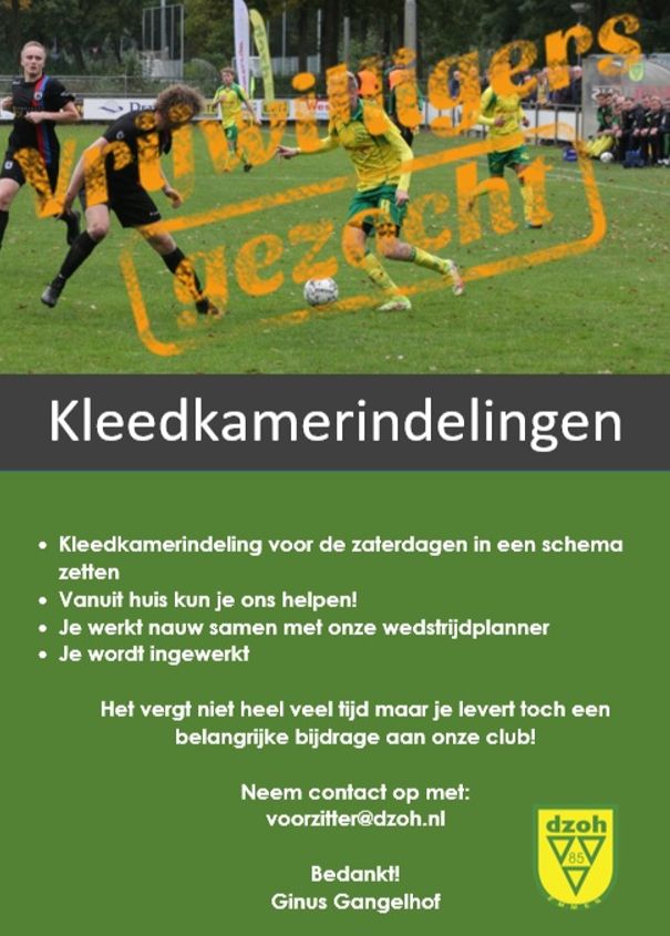 Kleedkamerindelingen.... Het vergt niet veel tijd, maar je levert een belangrijke bijdrage aan de club. Alvast bedankt!